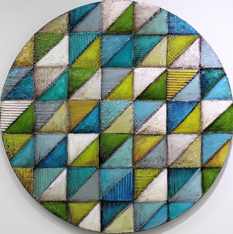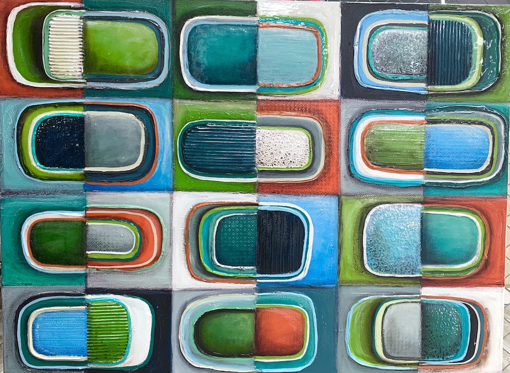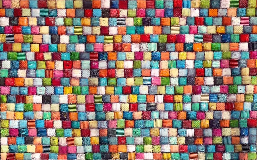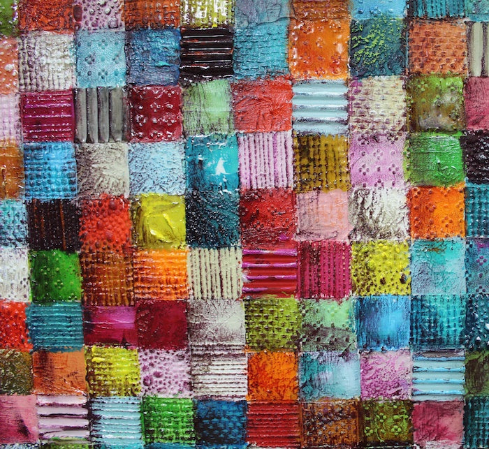 Memories of a happy childhood inspire Heather Wilson as she works. Patterns synonymous with the 60s and 70s, landmarks she remembers from family holidays, and the colours and symbols that surrounded her are captured in her art.