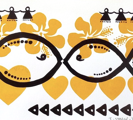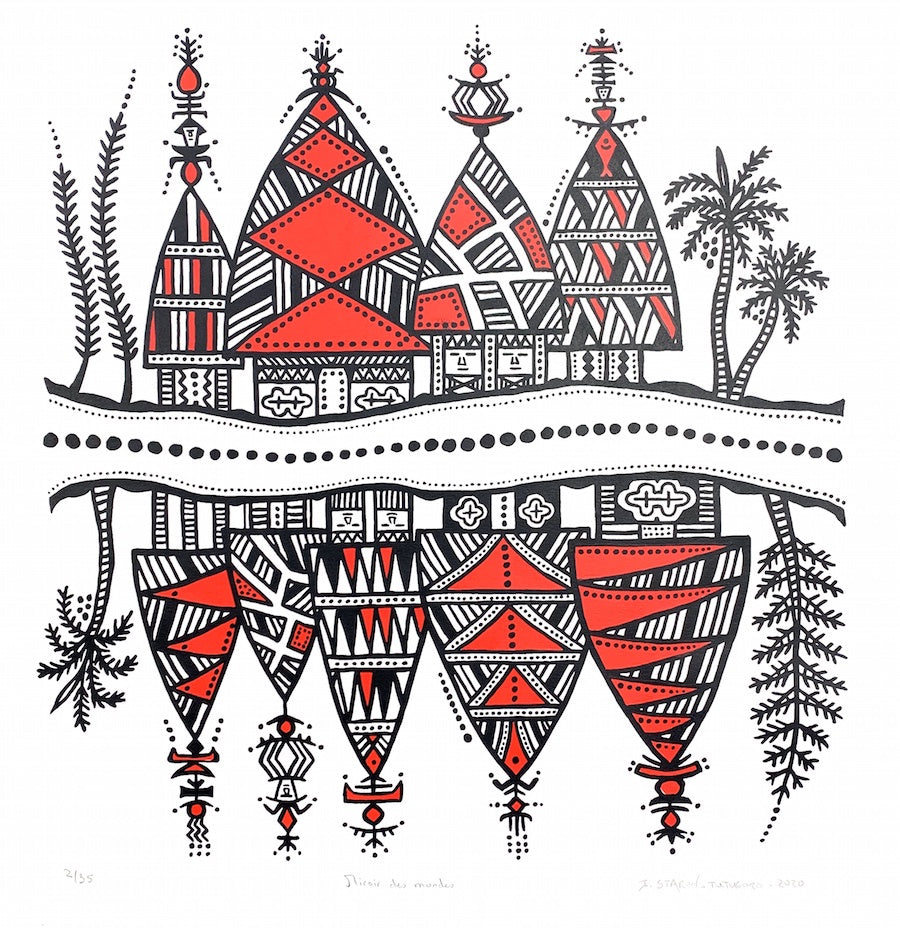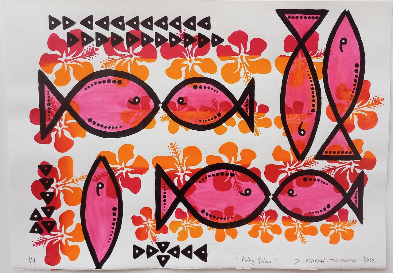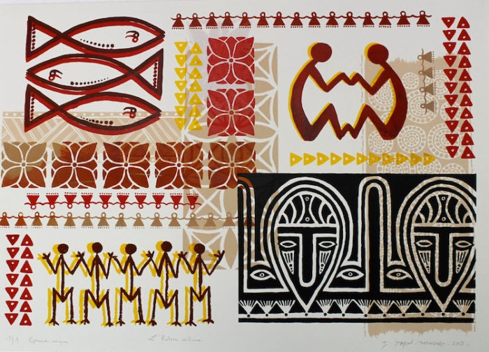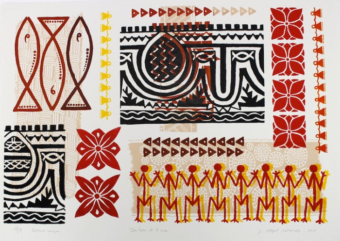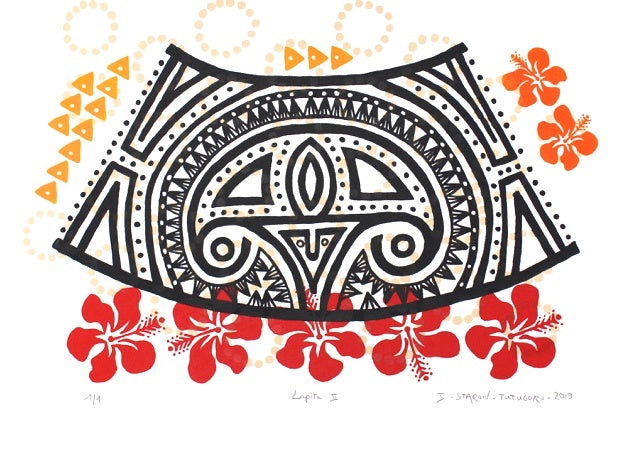 Marriage, a child, and 22 years living in the village of Poindimié, New Caledonia, drew me closer to the Kanak culture. This exposure, and an intense interest in indigenous symbolism, (petroglyphs but also engraved Kanak bamboo, oceanian Tapa and Lapita poteries) has led me to explore other Pacific islands cultures over the last 23 years.