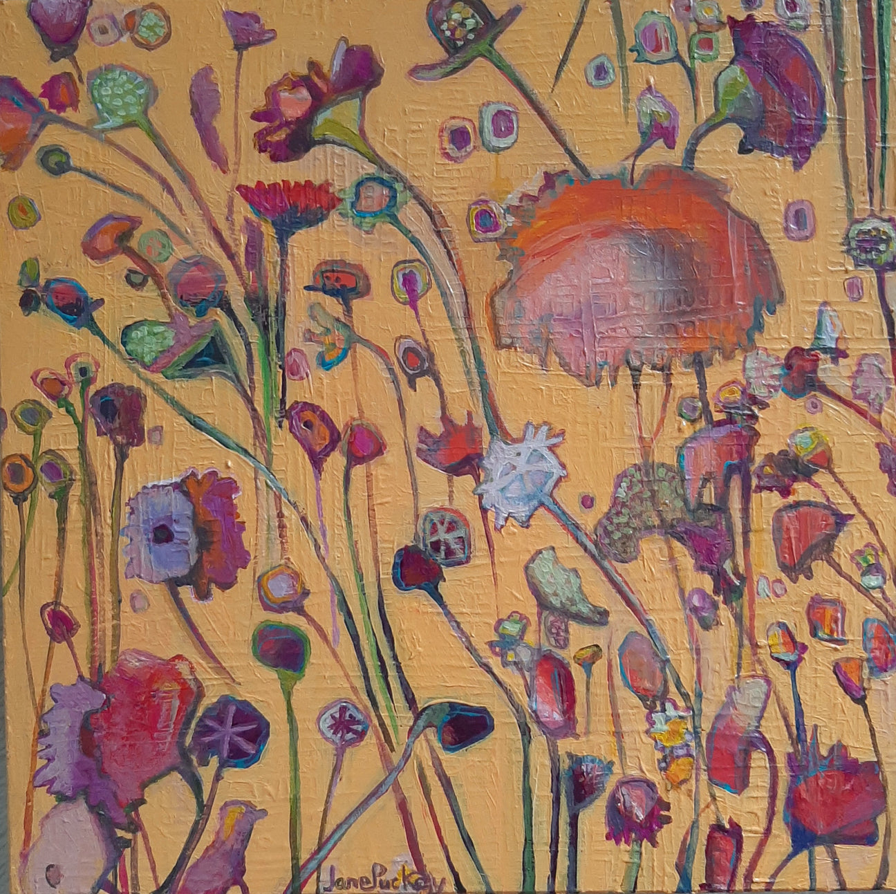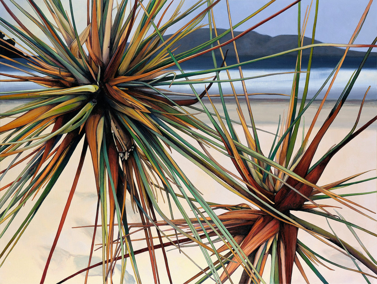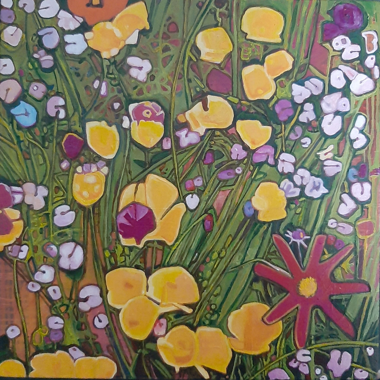 I draw an outline on a blank canvas from a photo which for me represents a breath taking, in-the-moment experience of feeling as one with whatever I was looking at, and am increasingly able to distract and surrender my conscious mind by listening to music, movies, documentaries and audio books – and let my body paint my painting.