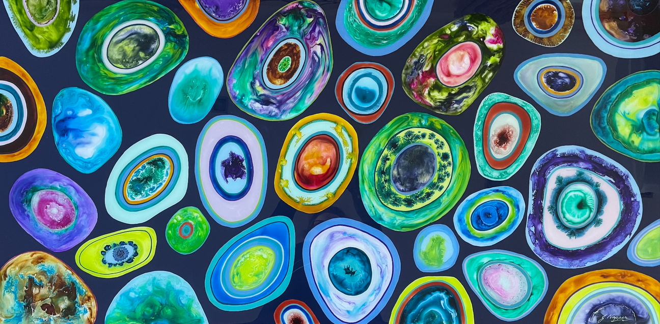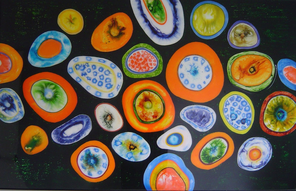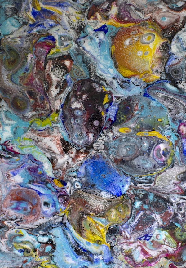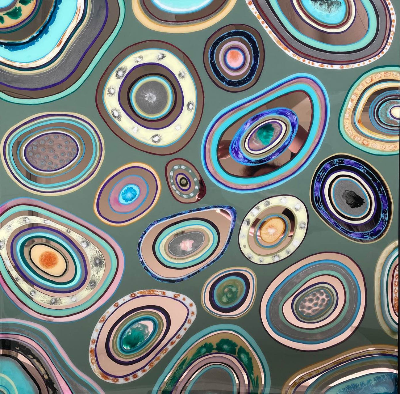 Crushing the Crown is an extension of my cell like artworks with details reflecting the image often seen under a microscope. Through the use of colour I wanted to portray positivity and hope to fight and crush the corona (crown) virus.