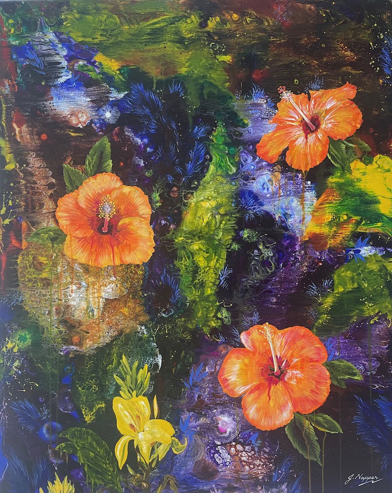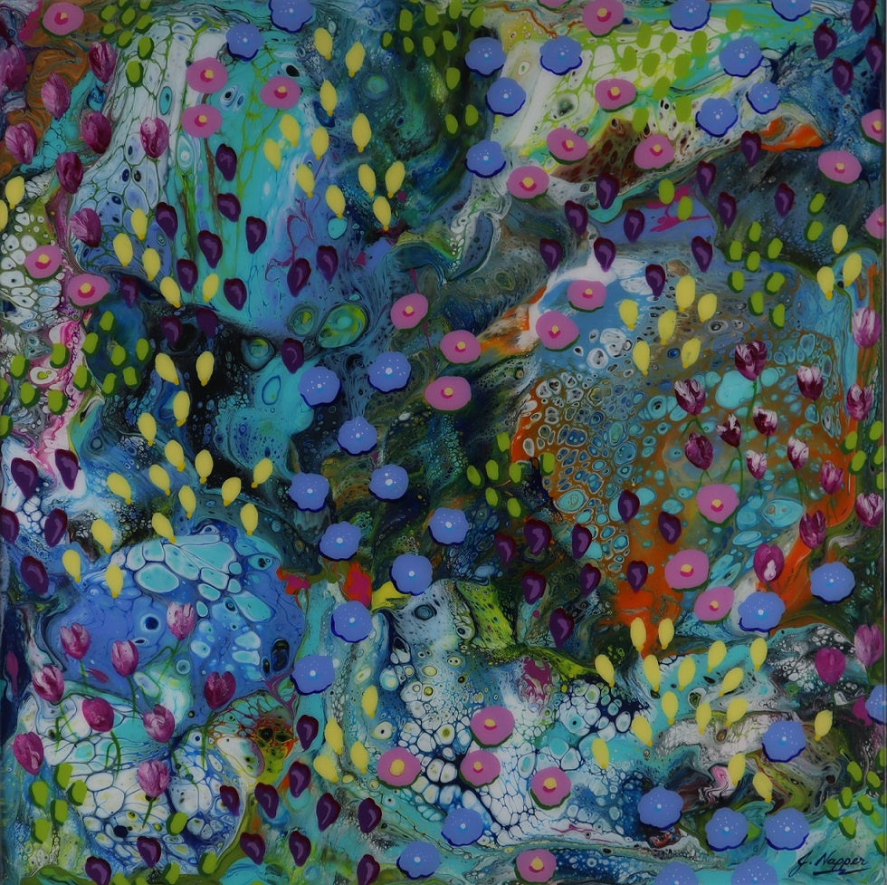 Janice Napper is a contemporary multi-media artist. Her work has always been characterised by a highly skilled handling of colour to generate distinctively vibrant, glistening artworks.
