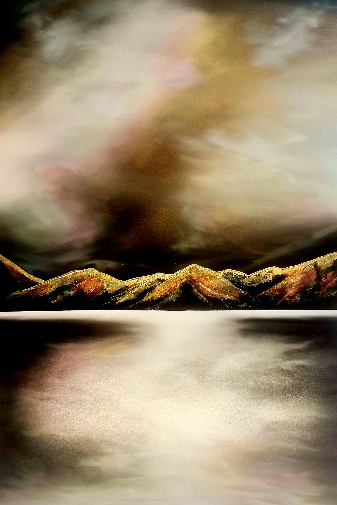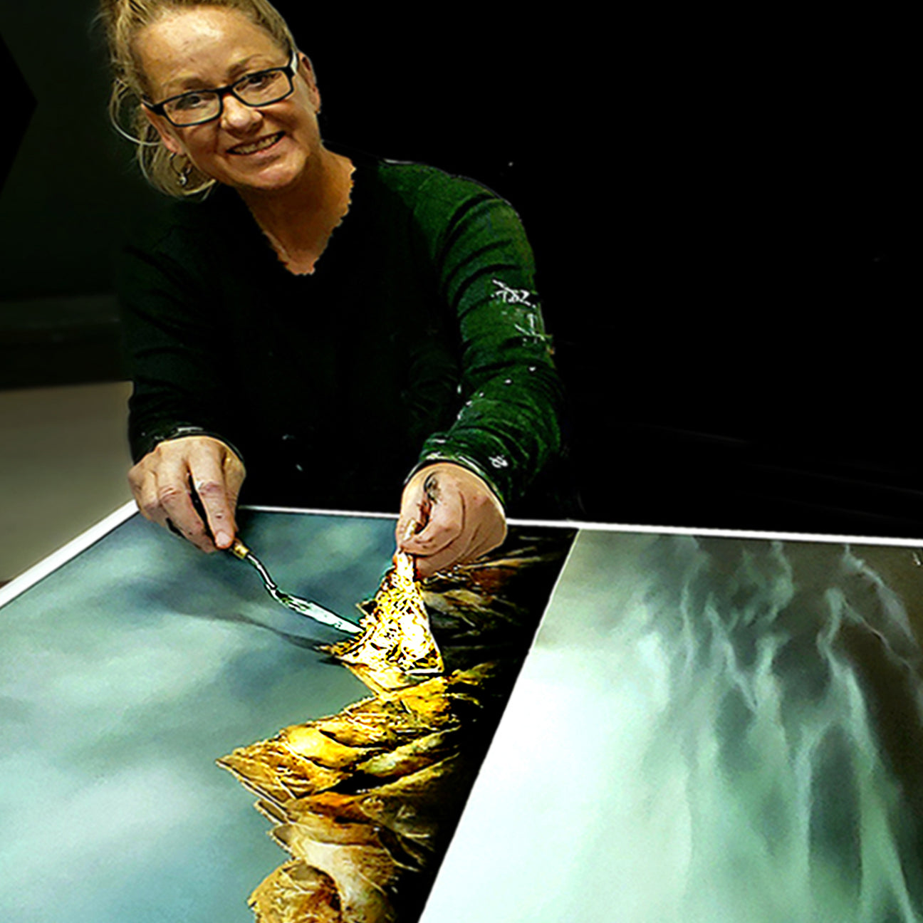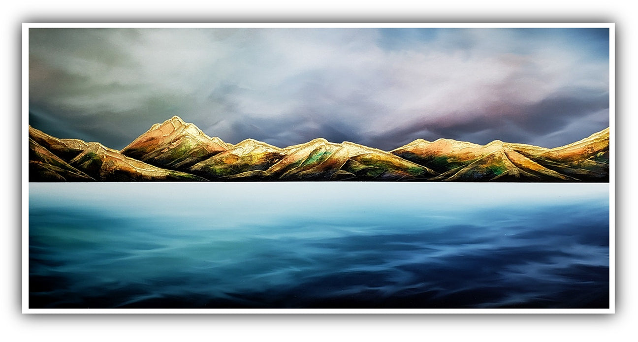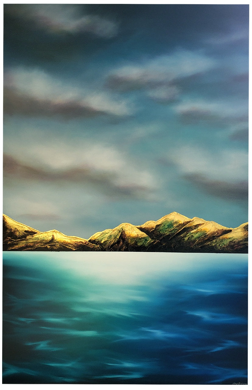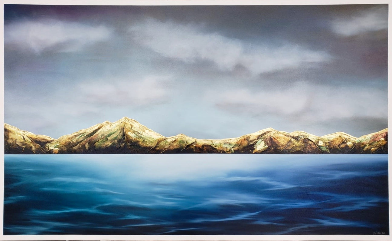 Juliet Best celebrates the atmospheric beauty of New Zealand’s coastlines and landscapes with her art. Her paintings often feature highly textured land-forms that are hand gilded with softly glowing gold-leaf.