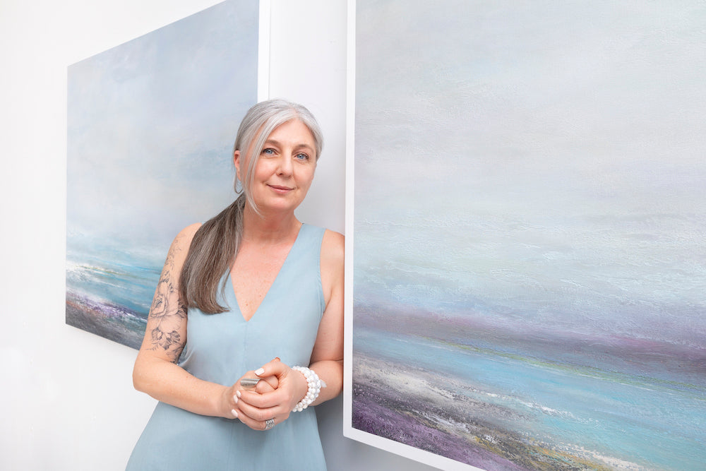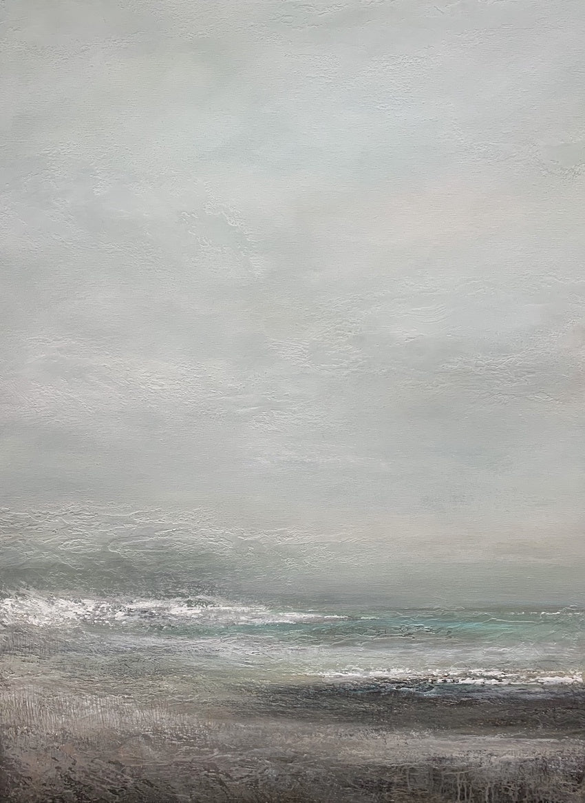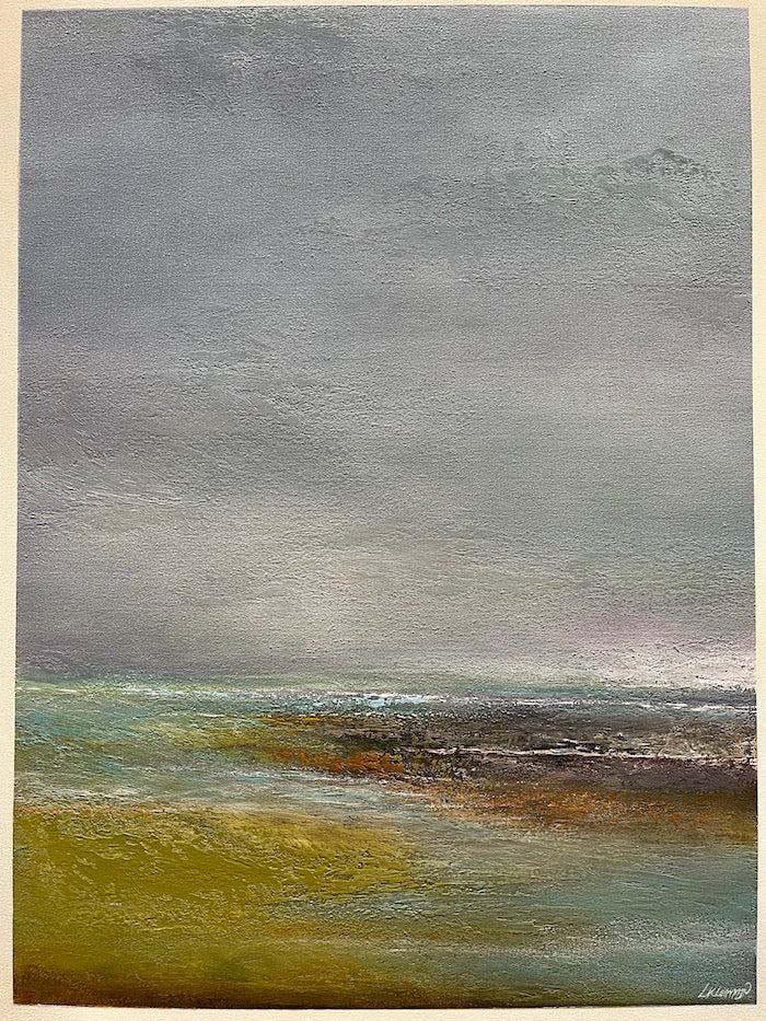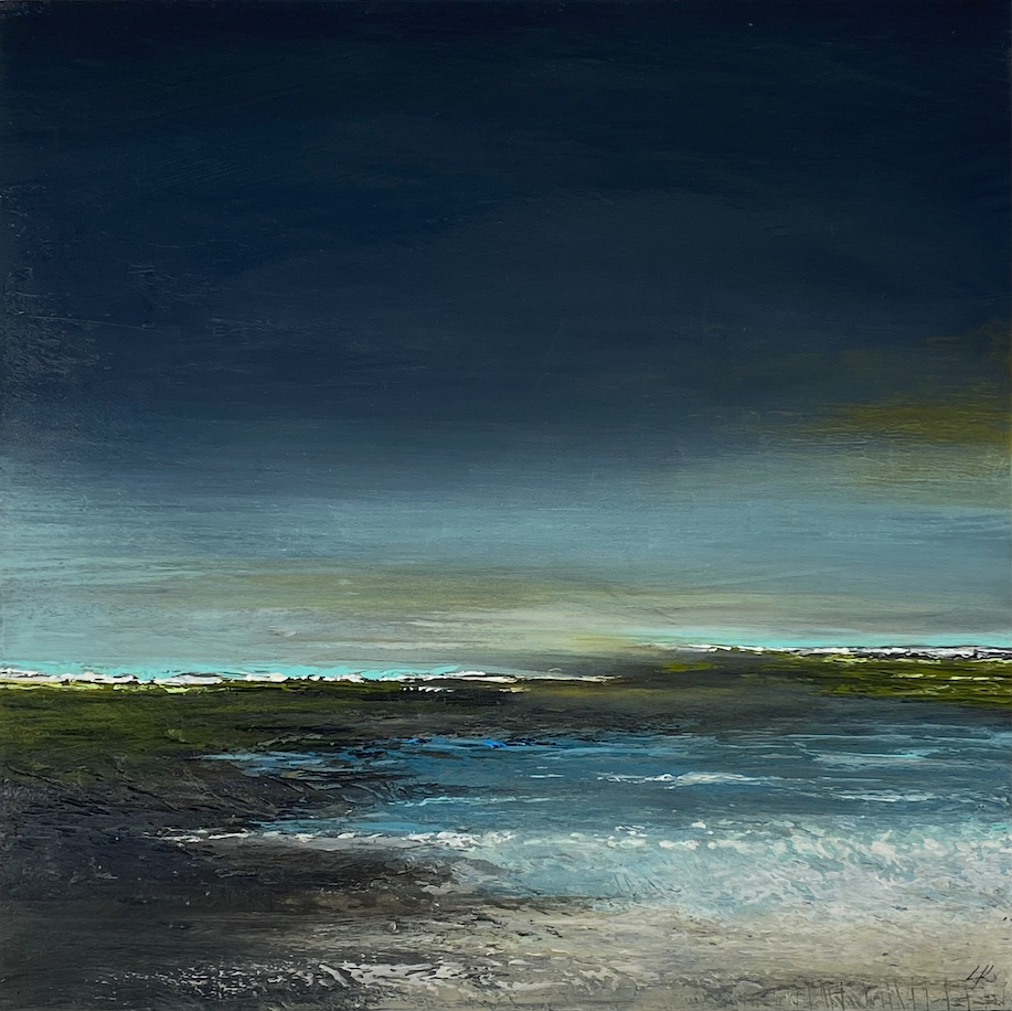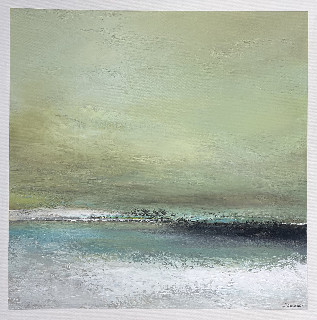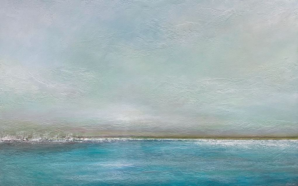 Lee is a contemporary abstract landscape artist inspired by the vastness of horizons and the sublimity of nature. Her paintings are a celebration of light and space, gentle colours are built up in many layers to create ethereal skies juxtaposed against worn, weathered shorelines slightly faded by time and made more beautiful for the lines and marks that tell their stories.