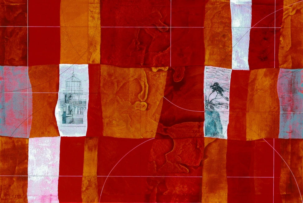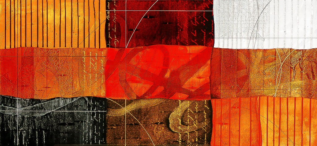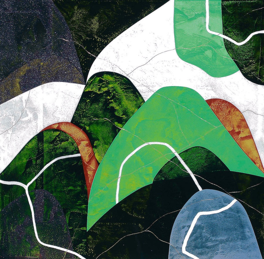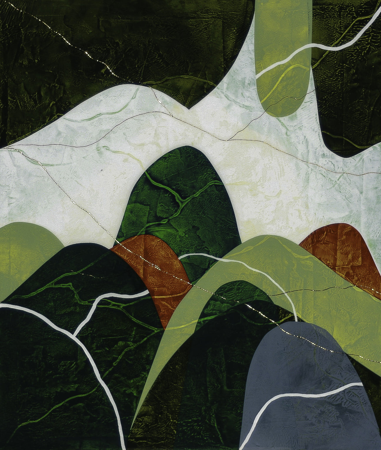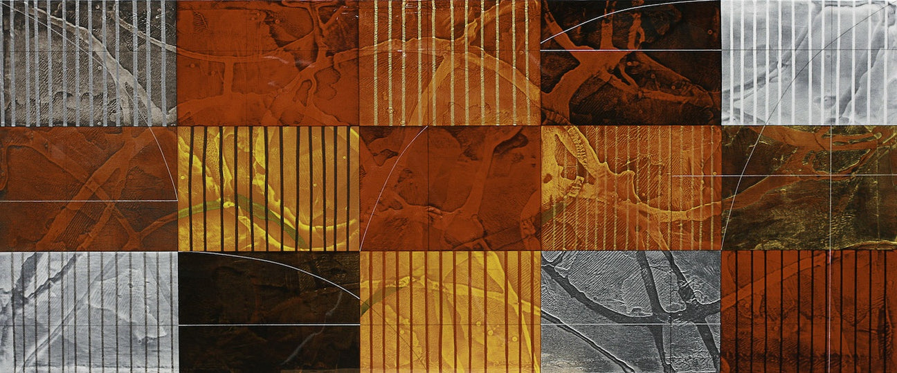 Down proof fabric, acrylic, ink, art resin on plywood board