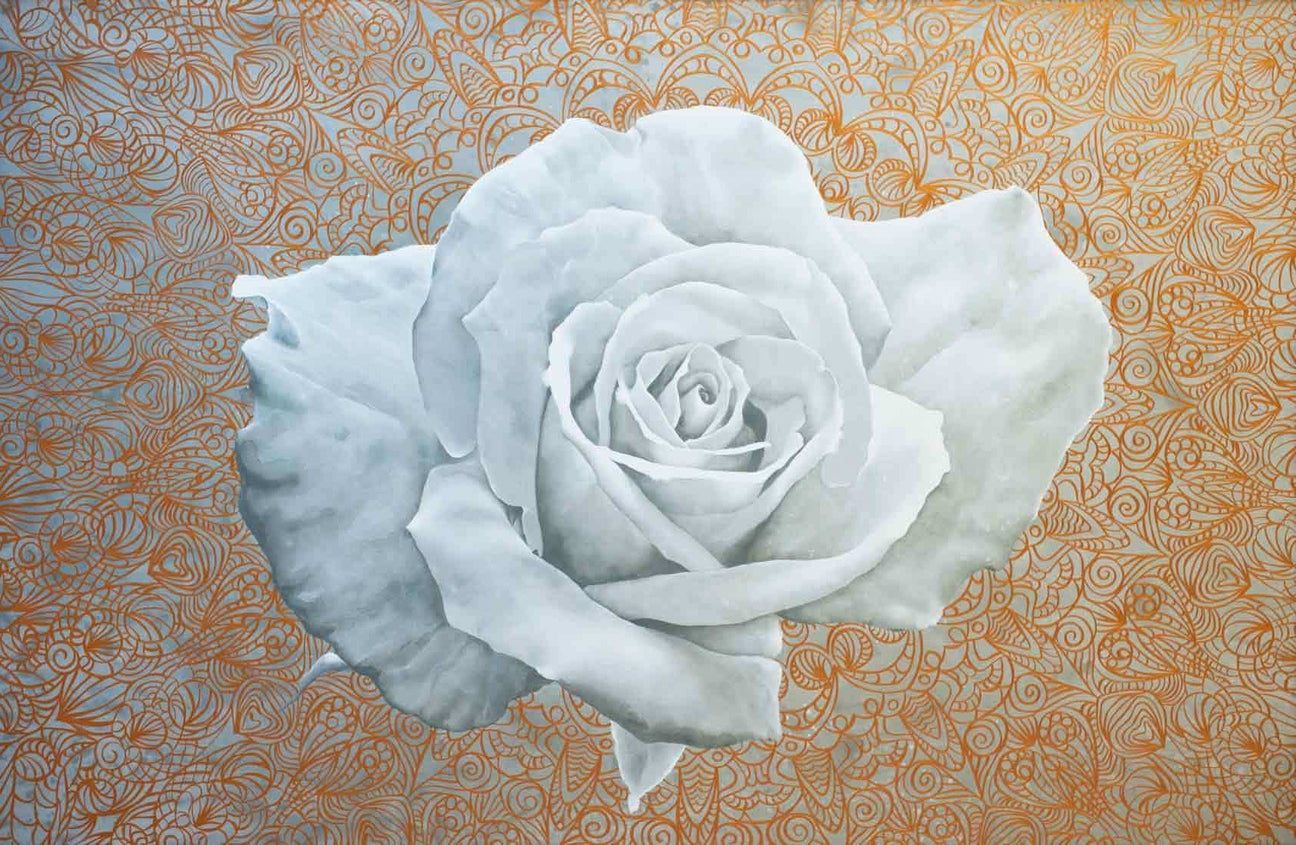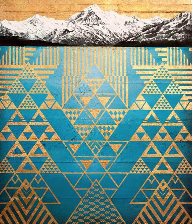Hand painted flashe (vinyl paint) and digital art on canvas