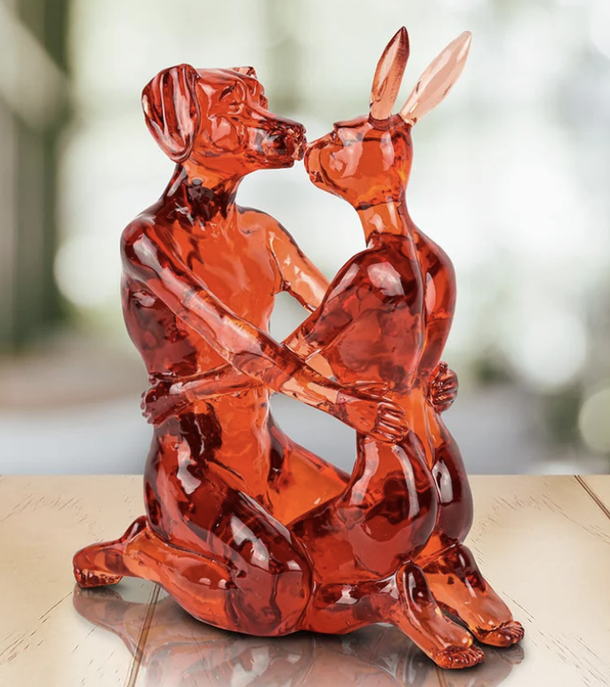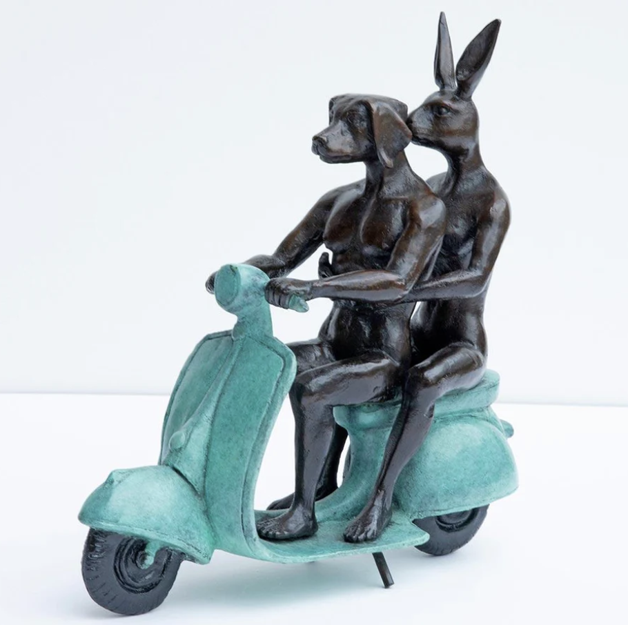 Gillie and Marc have always been in love with the city of love. Shortly after they first met they explored Paris together on their bikes. The artists plan to go back to Paris for a romantic getaway and to renew their wedding vows. They Loved Riding Together in Paris is modelled off The Tandem Riders, a life-sized sculpture in Perth. The artists won a tender to cement the sculpture right onto the road itself, among the cars as a way to address the city’s environmental concerns while representing diversity, companionship and alliance. Because Dogman and Rabbitwoman have no race they appeal to people of all races, genders, and identities in the most beautiful and universal way. The public loves to dress up the couple in various brightly-coloured costumes and jewellery.
